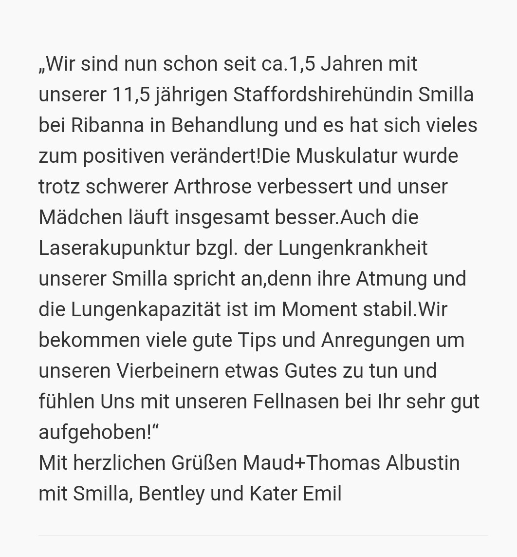 Dazu gebt ihr Tierphysiotherapie-Westerwald in der Google Suchmaschine ein und könnt dann auf Google Bewertungen klicken und eine Bewertung hinterlassen.
